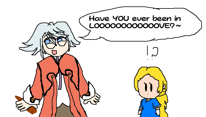 and yes, that is a sad attempt at drawing Paper Tsuki(I tried to make the eyes different colors, but it didn't look that good.) BTW, if you don't get the joke, she's refering to the ruin in her hand, and Tsuki thinks she talking about her.